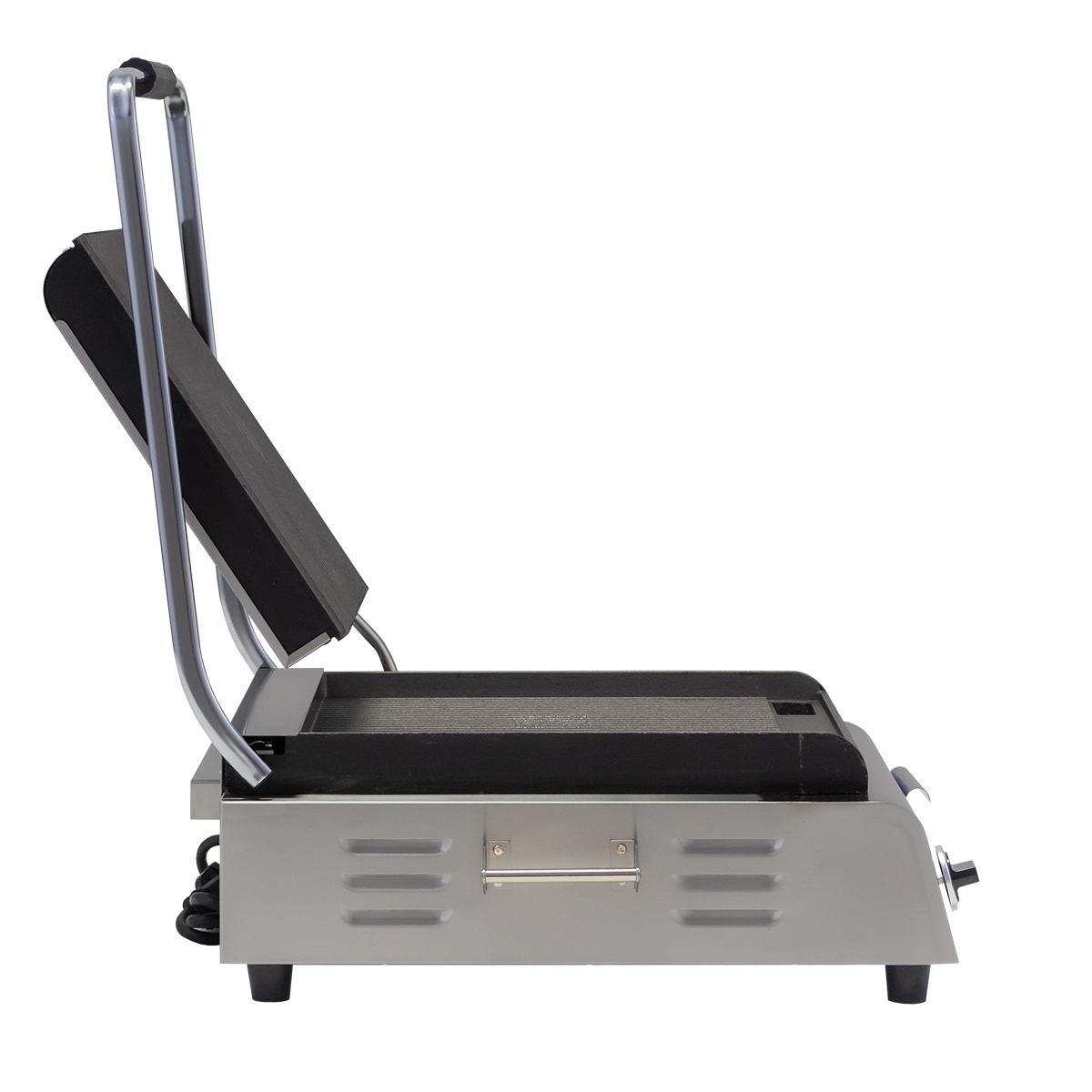 Globe's GSG14D Smooth Plate Panini Grill can handle cooking a variety of foods. This 14" x 14" grill with cast-iron plates, heavy duty, spring hinge with adjustable tension and the temperature is thermostatically controlled up to 570 degrees F.