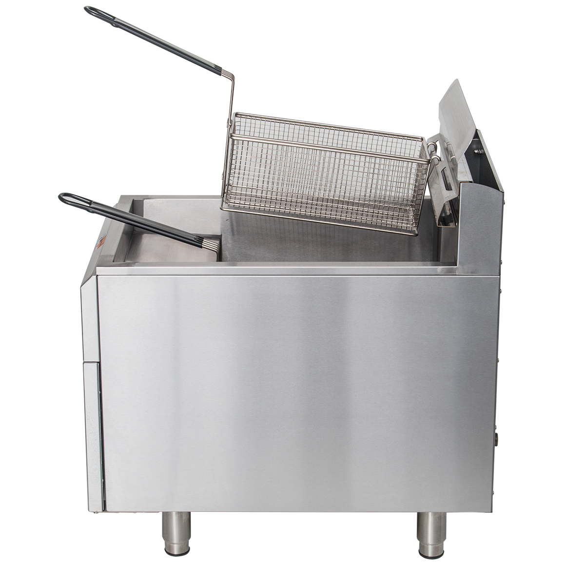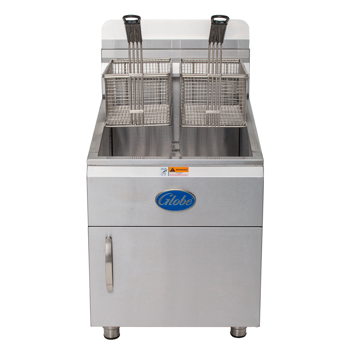 Globe's GF30G countertop natural gas fryer with 30lb oil capacity is perfect for heavy-duty countertop frying. Fish fillets, French fries, donuts, chicken, and more. These fryers are perfect for small kitchens and food trucks. With 13,250 BTUs per burner and a Robert ShawTM snap-action thermostat, the oil gets hot fast and stays hot longer.