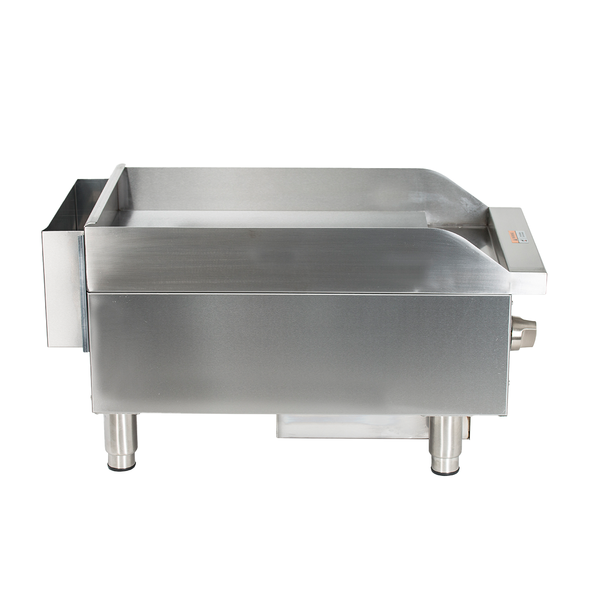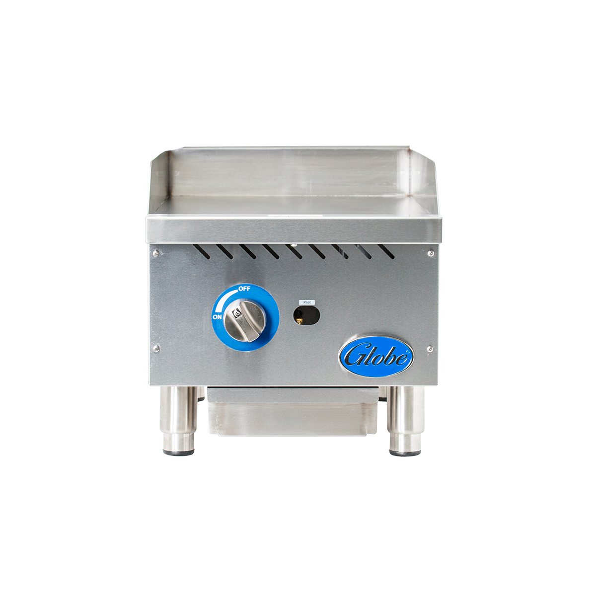 Whether you're cooking a lot of the same thing or a wide array of items at once, Globe's GG15G gas griddles are the best choice. With energy efficient insulation and evenly heated cooktops, these 15" griddles are great for light cooking in small spaces. The 1" thick stainless-steel griddle plate and 30,000 BTU U-style burners mean no dead zones or hot spots, so food is cooked evenly across the surface.