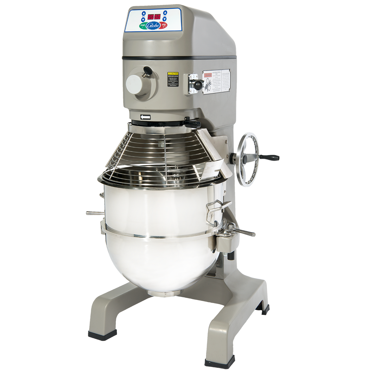 Globe's SP62P-3 is a powerful, reliable mixer optimized to handle tough dough applications. Front-facing controls and power bowl lift add ease to operation and the high-torque motor is made to mix 50lb. bags of flour. The SP62P-3 mixer includes a dough hook and bowl truck, and is backed by a 2-year parts and labor warranty.